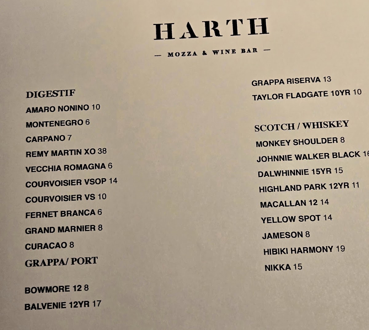 Complementing the dishes, Harth offers an impressive selection of wines and spirits, featuring exquisite Scoth options like Lagavulin 16 Yr and Hibiki Harmony.